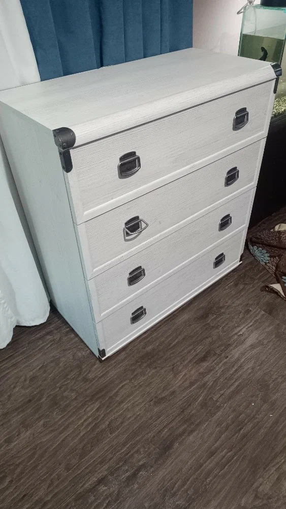 Тумба состоят из 4 вместительных ящиков, который дополнен изнутри поперечной металлической полосой. Такое решение позволяет не прогибаться дну ящика и разместить большое количество вещей, игрушек, посуды или текстиля.