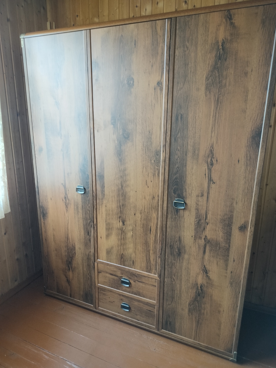 Левая часть шкафа состоит из отдела со штангой и полками, где вы сможете расположить сезонные вещи, одежду на вешалках, рюкзаки и дамские сумочки. Левая часть имеет вместительные полки для хранения постельного белья, немнущихся вещей, предметов в коробках и даже обуви. В нижней части посередине располагаются два выдвижных ящика предоставляющих дополнительное место для хранения аксессуаров, мелких элементов гардероба или косметики.