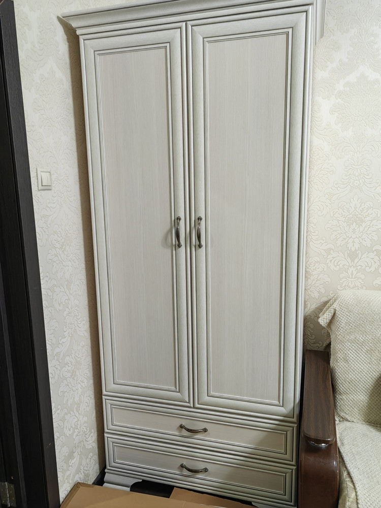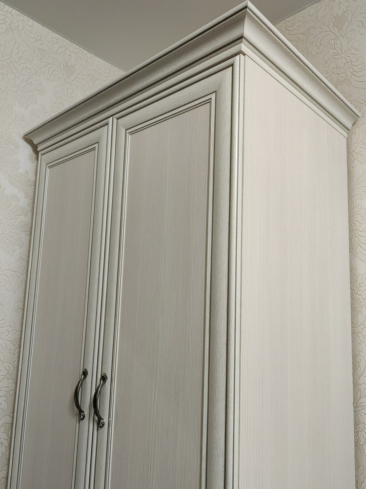 Шкаф Тиффани Вудлайн Кремовый 2DG2S — это изысканное и функциональное мебельное решение, идеально подходящее для оформления детской комнаты, прихожей или спальни в классическом и неоклассическом стилях. Его светлый, теплый оттенок вудлайн кремовый придает интерьеру уют и визуальную легкость, создавая атмосферу гармонии и уюта. Дизайн шкафа выполнен с использованием комбинированных элементов, включая филенчатые фасады и декоративный карниз, что подчеркивает его элегантность и высокое качество исполнения. Металлические ручки добавляют изделию современный штрих, обеспечивая удобство в использовании и долговечность. Корпус и фасады шкафа выполнены из качественных материалов, которые гарантируют прочность и надежность конструкции. Особое внимание уделено фурнитуре: шариковые направляющие обеспечивают плавное и бесшумное открывание ящиков, а петли без доводчиков способствуют долговечности и простоте эксплуатации. Шкаф оснащен двумя дверцами и двумя выдвижными ящиками (2DG2S), что позволяет рационально организовать пространство для хранения одежды, обуви и других предметов. Несмотря на отсутствие точных данных о количестве полок и максимальной нагрузке, конструкция продумана таким образом, чтобы выдерживать повседневные нагрузки и обеспечивать удобство хранения. Габариты шкафа составляют 99 см в ширину и 62,4 см в глубину, что делает его компактным и удобным для размещения даже в небольших помещениях. Возможность зеркальной сборки не предусмотрена, однако изделие отличается высокой функциональностью и эстетической привлекательностью. Шкаф Тиффани Вудлайн Кремовый 2DG2S — это идеальный выбор для тех, кто ценит классический дизайн с нотками неоклассики, качество материалов и продуманную эргономику. Он станет надежным и стильным элементом вашего интерьера, создавая атмосферу уюта и порядка в вашем доме.