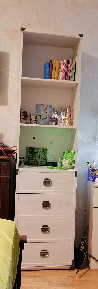 Открытые полки предоставляют удобный доступ к содержимому внутри. Благодаря возможности регулирования полок вы сможете разместить книги и элементы любой высоты. В выдвижных ящиках на роликовых направляющих удобно хранить более мелкие предметы, бумаги или аксессуары.