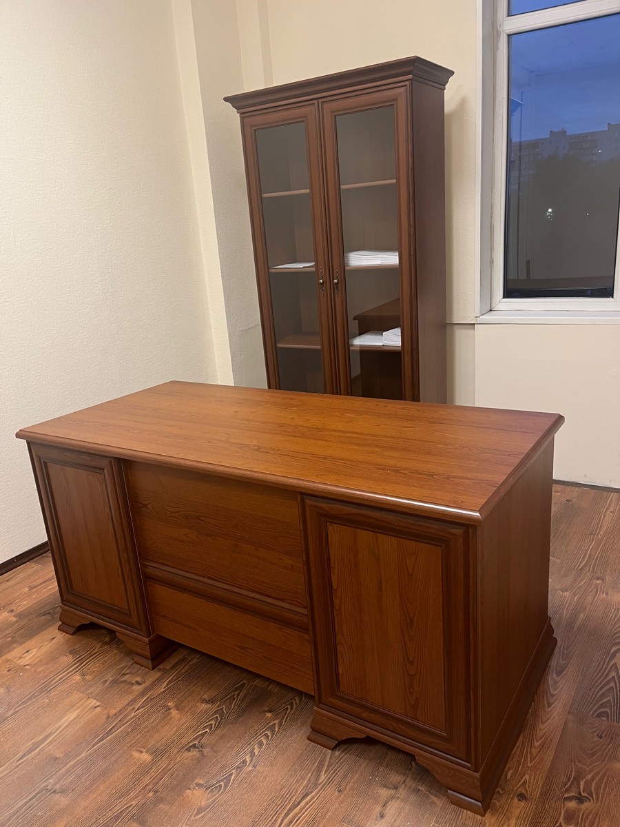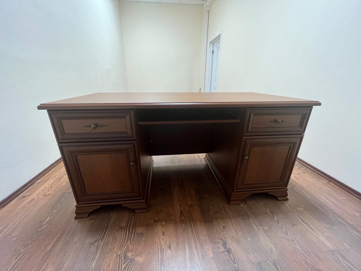 Просторная прямоугольная столешница имеет достаточно пространства, чтобы разместить компьютер, настольные лампы, книги и органайзеры. Две симметричные тумбы по бокам гарантируют комфортное хранение школьных и учебных принадлежностей.