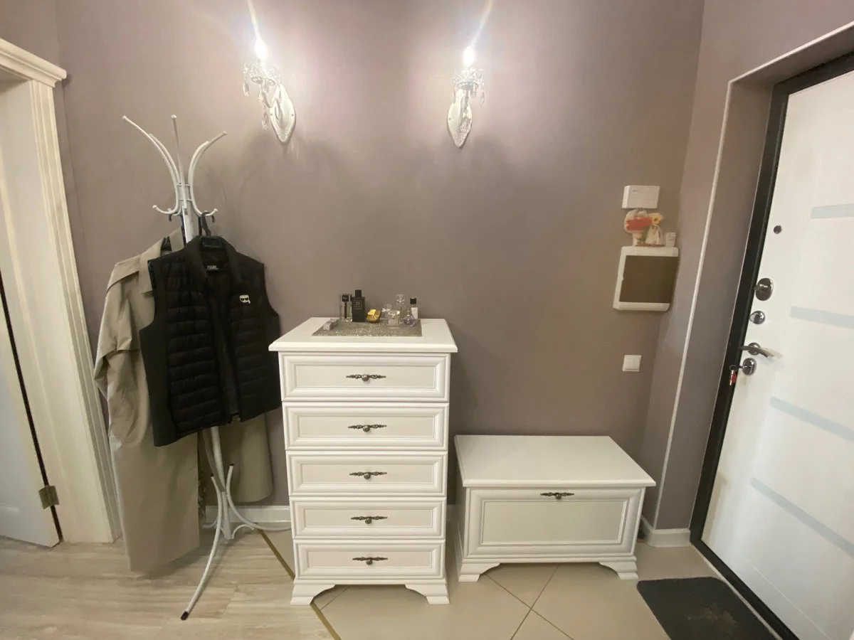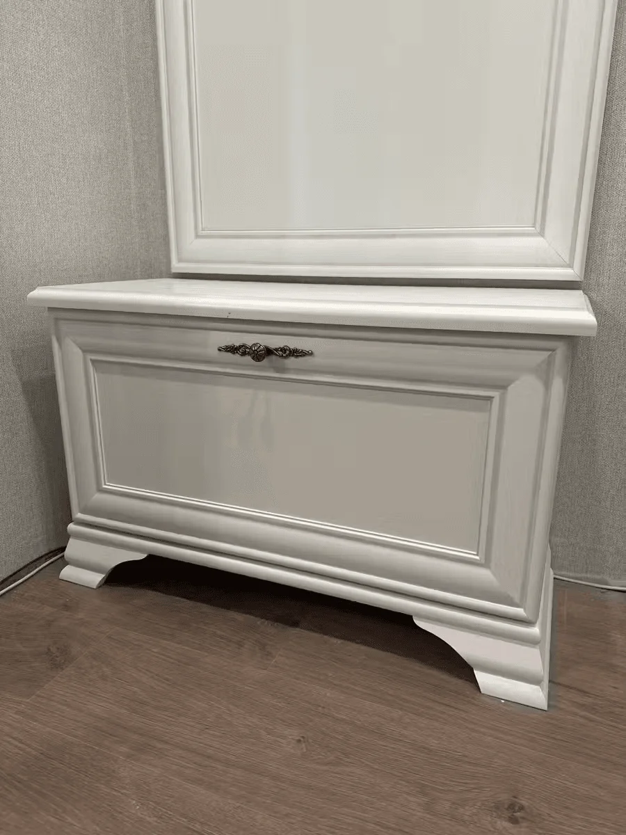 Изящная металлическая ручка удобна в использовании и подчеркивает классический стиль. Верхняя поверхность может служить подставкой для сумок, рюкзаков и ключей.