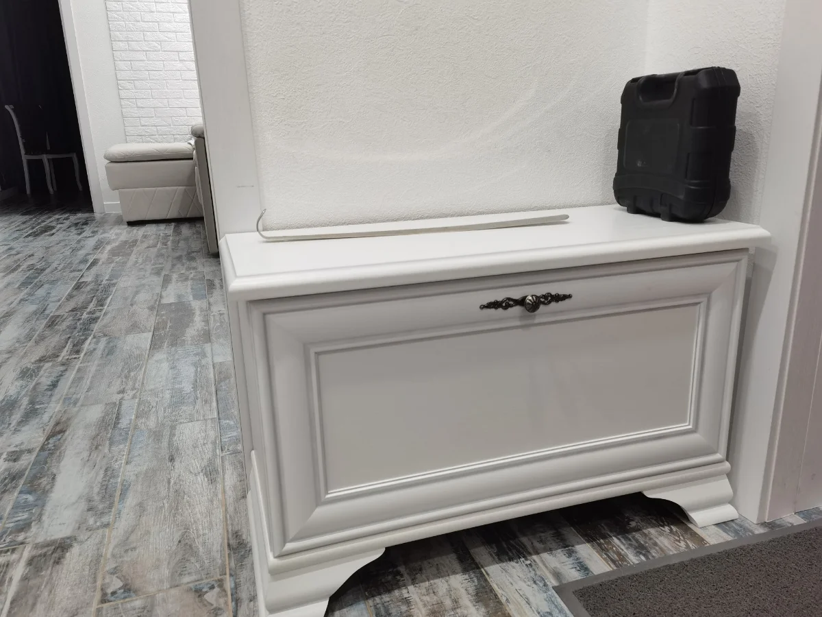 Модель имеет откидную дверцу и занимает минимум пространства при открытии. Это особенно актуально в небольших прихожих. Внутри имеется просторное отделение для хранения обуви и аксессуаров. Закрытая конструкция обувницы защищает вашу обувь от пыли и других внешних факторов.