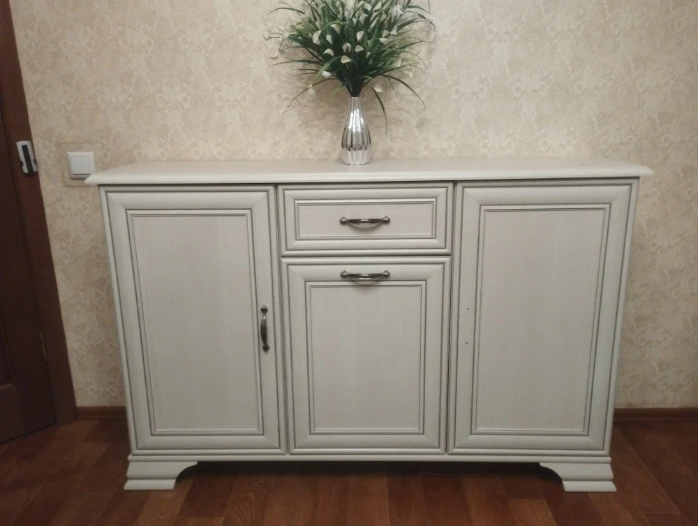 Тумба-комод Тиффани в цвете вудлайн кремовый — это идеальное сочетание классического и неоклассического стилей, которое прекрасно впишется в интерьер любой комнаты: детской, гостиной, кабинета, прихожей, спальни или столовой. Изящный дизайн и продуманная функциональность делают этот комод универсальным и практичным элементом мебели. Корпус и фасад выполнены из высококачественного МДФ с матовой поверхностью, что придает изделию благородный и стильный вид, а также обеспечивает долговечность и устойчивость к внешним воздействиям. Цвет вудлайн кремовый создает теплую и уютную атмосферу, гармонично сочетаясь с различными оттенками интерьера. Тумба оснащена одной дверкой, несколькими ящиками и открытой полочкой, что позволяет удобно организовать хранение белья, одежды и других предметов. Ножки из МДФ придают изделию легкость и изящность, а также обеспечивают устойчивость и надежность конструкции. Филенчатые фасады и декоративный карниз подчеркивают классический стиль и добавляют изделию изысканности. Для удобства использования в комоде применена фурнитура высокого качества: металлические ручки, шариковые направляющие для ящиков и петли без доводчиков. Это гарантирует плавное и бесшумное открывание и закрывание, а также долговечность эксплуатации. Размеры тумбы-комода составляют 139 см в ширину и 37 см в глубину, что делает ее компактной и удобной для размещения даже в небольших помещениях. Благодаря возможности зеркальной сборки изделие можно адаптировать под особенности вашего пространства. Тумба-комод Тиффани — это не только функциональный предмет мебели, но и стильный акцент, который подчеркнет вкус и индивидуальность вашего интерьера. Она идеально подойдет для хранения белья и других вещей, обеспечивая порядок и комфорт в вашем доме.