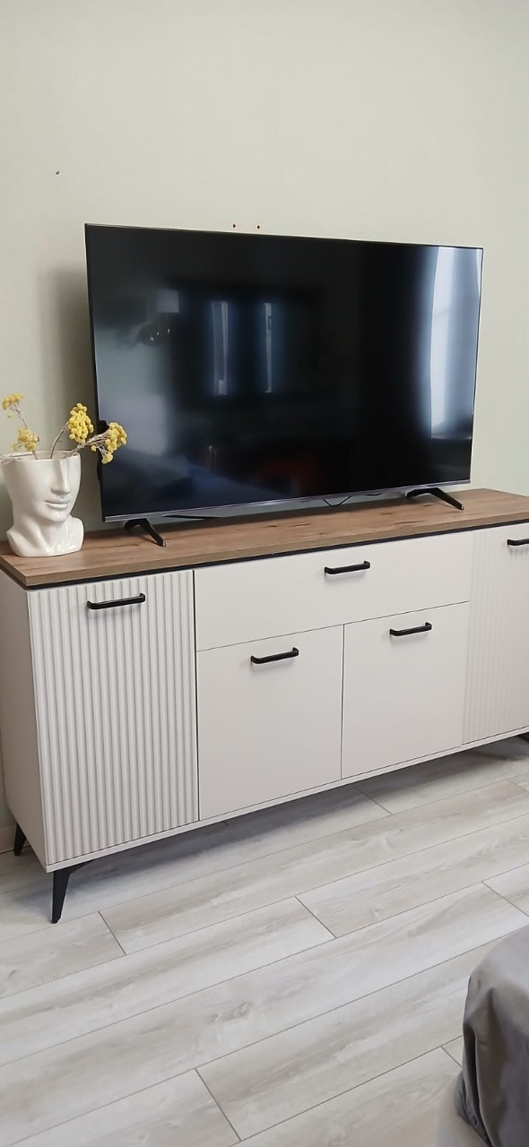 Тумба-комод Винати в изысканном цвете Персидский жемчуг с элементами Амарок — это идеальное сочетание современного минимализма и функциональности, которое станет стильным и практичным дополнением любого интерьера. Этот напольный комод выполнен в рамках коллекции Винати и предназначен для использования в различных помещениях: детской, гостиной, кабинете, кухне, прихожей и спальне. Корпус тумбы выполнен в цвете Персидский жемчуг с оттенками Дуб Велингтон, что придаёт изделию теплый и благородный вид. Фасады комбинированные, сочетающие в себе цвета Персидский жемчуг и Амарок, что создаёт эффектный визуальный контраст и подчёркивает современный стиль изделия. Тумба оснащена металлическими ножками, которые обеспечивают устойчивость и долговечность конструкции, а также металлическими ручками, удобными в использовании и гармонирующими с общим дизайном. Особенностью модели является наличие дверки и ящиков, а также открытой полочки, что позволяет удобно организовать хранение различных предметов — от белья и документов до декоративных элементов и даже аквариума. Благодаря продуманной конструкции с дверками и полками, тумба обеспечивает максимальную функциональность и удобство в использовании. Внутренние ящики оснащены шариковыми направляющими, что обеспечивает плавное и бесшумное открывание и закрывание. Петли с доводчиками гарантируют мягкое закрытие дверок, предотвращая хлопки и продлевая срок службы мебели. Тумба-комод выполнена с системой плавного закрытия, что добавляет комфорту при эксплуатации и повышает безопасность, особенно в детских комнатах. Высокое качество материалов и фурнитуры обеспечивает надежность и долговечность изделия. Металлические ножки не только придают изделию современный вид, но и облегчают уборку под мебелью. Размеры тумбы составляют 171 см в ширину и 39,4 см в глубину, что позволяет разместить её даже в ограниченном пространстве, не загромождая комнату. Благодаря универсальному дизайну и нейтральной цветовой гамме, тумба-комод Винати легко впишется в интерьер в стиле минимализм и современный стиль, дополняя его элегантностью и практичностью. Этот комод станет отличным решением для тех, кто ценит качество, функциональность и стиль в мебели. Он идеально подходит для хранения белья, документов, мелких предметов и даже может служить подставкой под аквариум благодаря прочной конструкции. Тумба-комод Винати — это надежный и эстетичный элемент интерьера, который прослужит вам долгие годы, создавая уют и порядок в вашем доме или офисе.