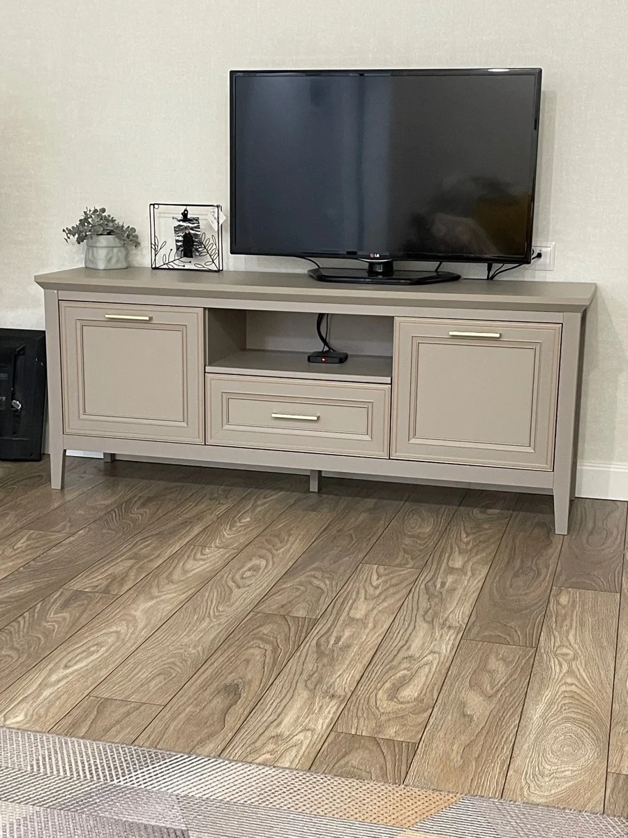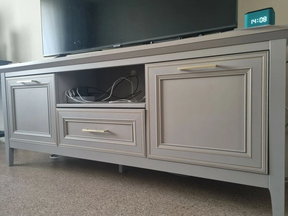 Тумба под телевизор Classic RTV2K1S имеет высокие ножки и дополнительную опору под днищем, что придает ей устойчивость и упрощает уборку.