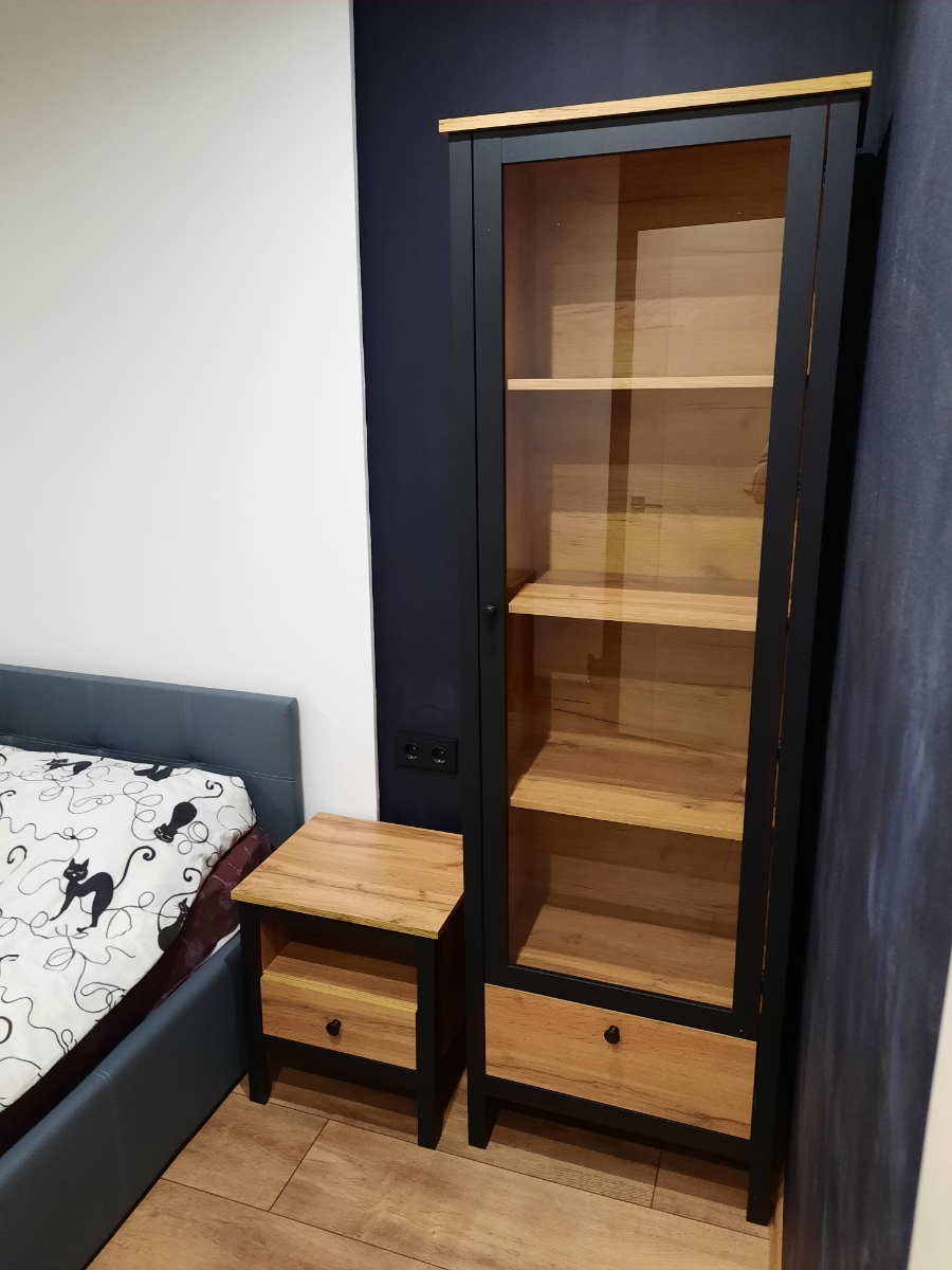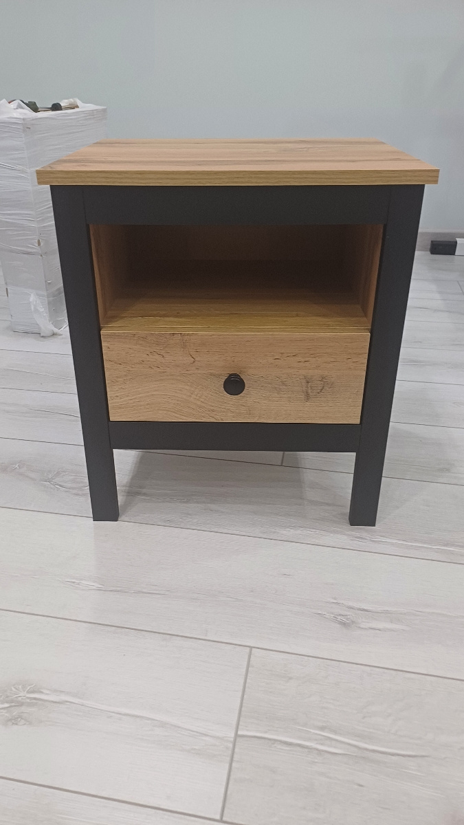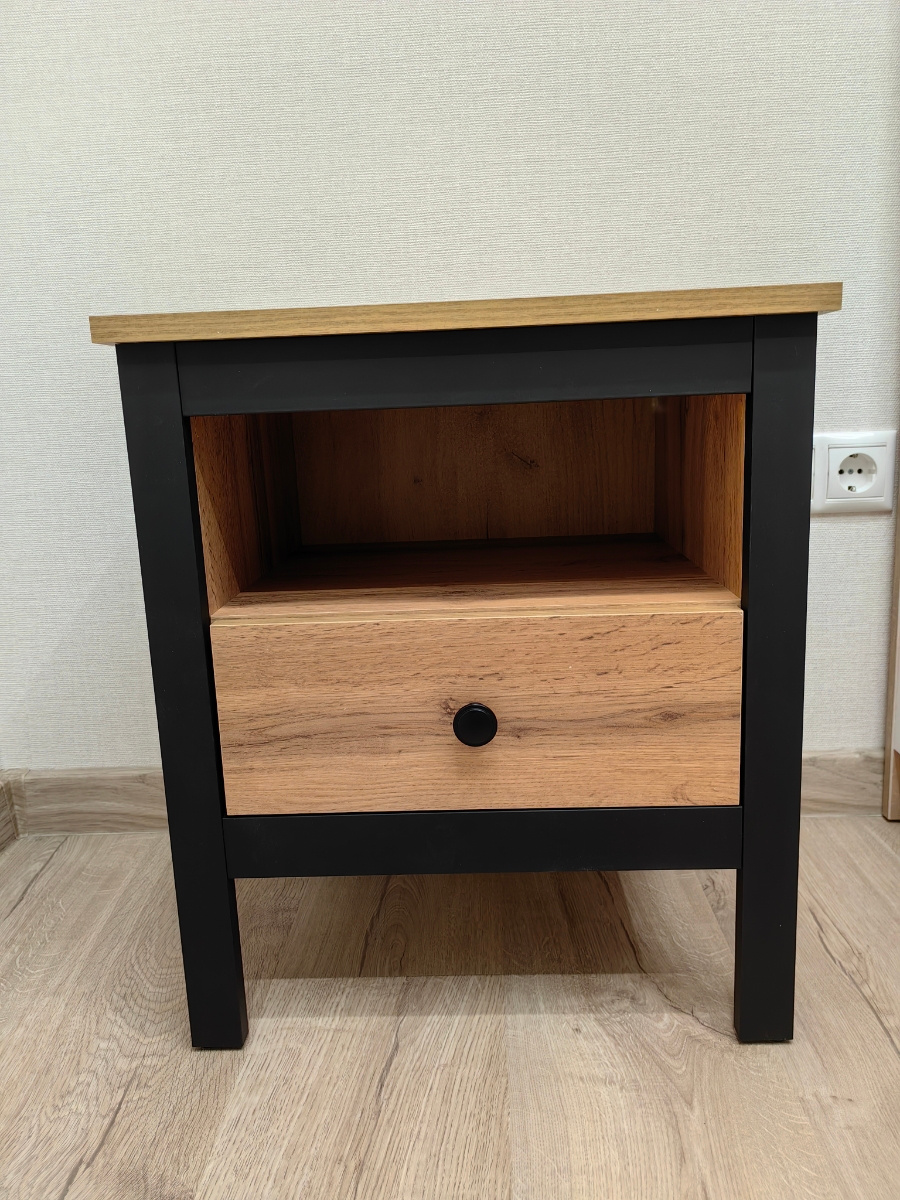 Миниатюрная и аккуратная тумбочка станет вашей главной помощницей после пробуждения. На столешнице отлично поместятся ночники и стаканы с напитками. Открытая полочка обеспечит удобный доступ к телефону и другим аксессуарам для сна. Выдвижной ящик на шариковых направляющих, гарантирует плавное и бесшумное закрытие, что особенно актуально в спальных зонах.
