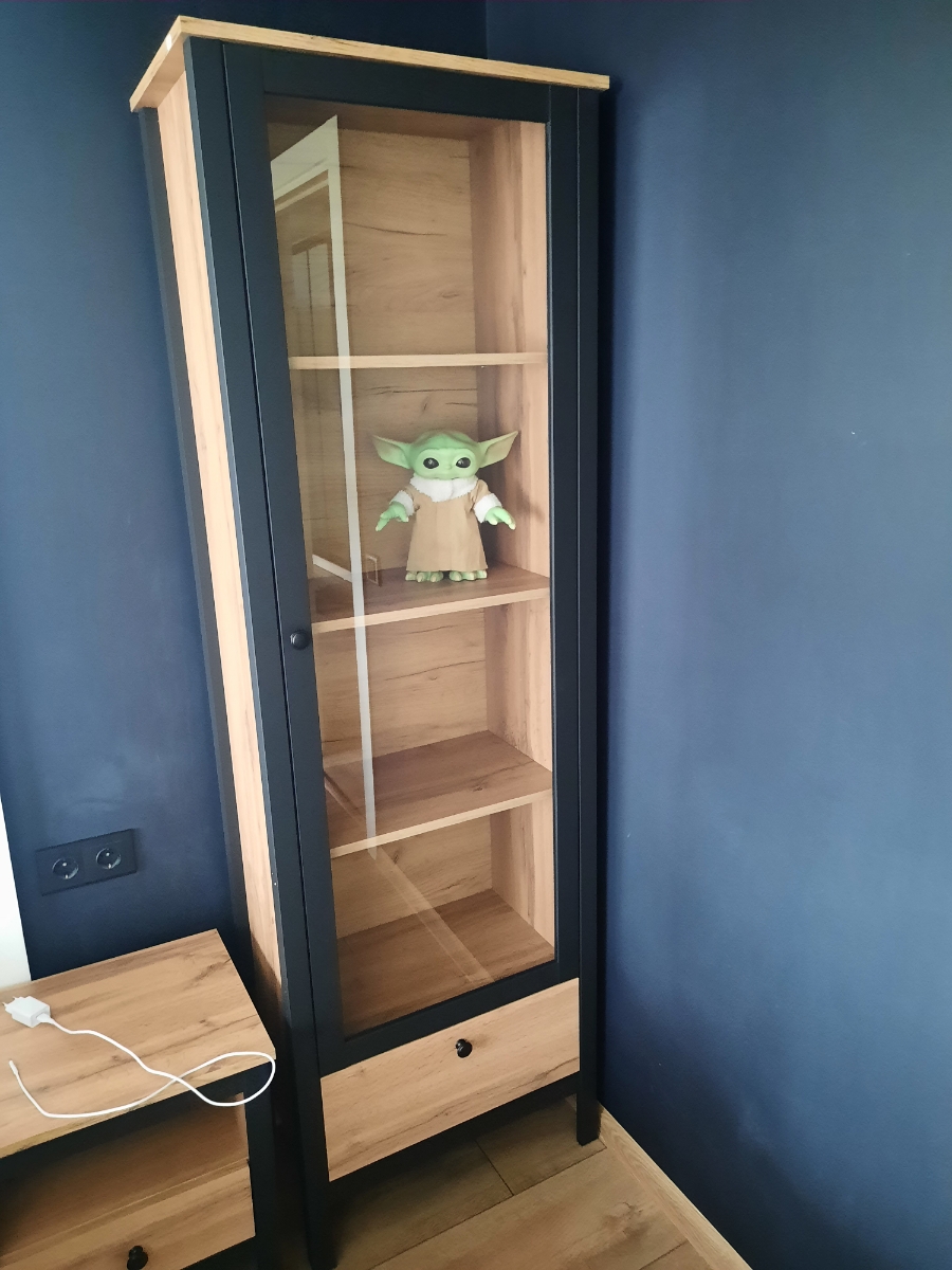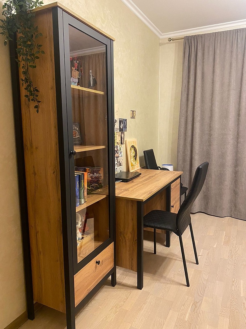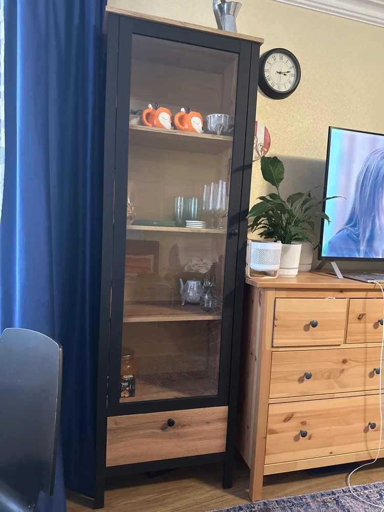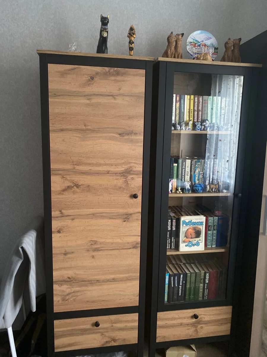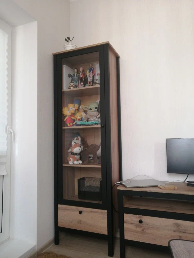 Витрина имеет четыре просторные полки. Внутри вы можете расположить хрусталь, фарфор, книги или элементы коллекции. Благодаря стеклянной дверце предметы внутри будут защищены от пыли и внешнего воздействия.