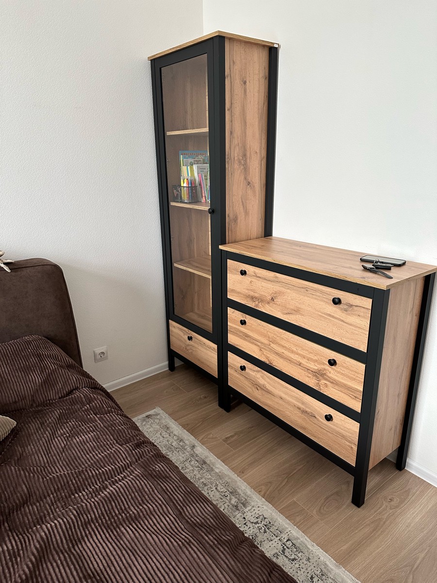 Выдвижной ящик на шариковых направляющих станет отличным местом для хранения негабаритных предметов. Круглые металлические ручки удобны в использовании, а высокие ножки изделия значительно облегчают уборку.