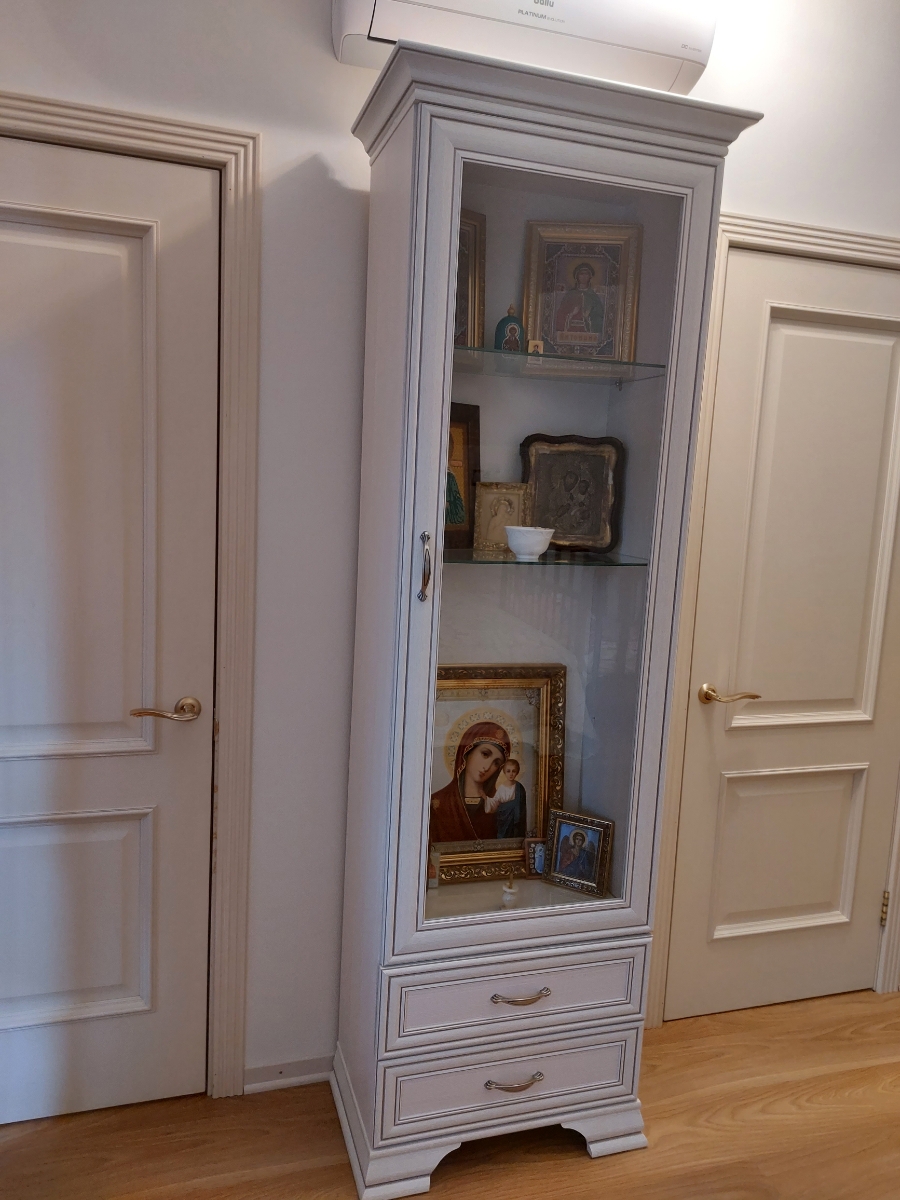 Витрина Тиффани Вудлайн Кремовый 1V2S — это изысканный элемент мебели, который станет украшением любого интерьера в классическом или неоклассическом стиле. Выполненная в нежном оттенке вудлайн кремовый, эта витрина гармонично впишется в гостиную, столовую, кабинет, спальню или детскую, придавая помещению атмосферу уюта и элегантности. Корпус и фасад изделия изготовлены из высококачественных материалов с отделкой в цвете вудлайн кремовый, что обеспечивает долговечность и привлекательный внешний вид. Особое внимание уделено деталям: филенчатые фасады, изящный карниз и аккуратные металлические ручки подчеркивают классический стиль и придают мебели благородство. Витрина оснащена стеклянными дверцами и стеклянными полками, которые позволяют эффектно демонстрировать коллекционные предметы, книги или посуду, создавая легкость и визуальную прозрачность конструкции. Благодаря стеклянным элементам интерьер становится светлее и просторнее. Функциональность модели обеспечивают два вместительных ящика с шариковыми направляющими, которые гарантируют плавное и бесшумное открывание. Петли без доводчиков обеспечивают надежность и долговечность эксплуатации. Витрина может использоваться как буфет или сервант, что расширяет возможности ее применения в различных комнатах. Размеры изделия — ширина 69 см и глубина 39,9 см — делают его компактным и удобным для размещения даже в небольших помещениях, не загромождая пространство. Несмотря на компактность, витрина обладает достаточной вместимостью для хранения и демонстрации различных предметов. Данная модель не оснащена системой плавного закрытия и возможностью зеркальной сборки, что стоит учитывать при планировании интерьера. Однако прочные материалы и качественная фурнитура обеспечивают надежность и долговечность мебели. Витрина Тиффани Вудлайн Кремовый 1V2S — идеальный выбор для тех, кто ценит классический дизайн, функциональность и высокое качество исполнения. Она станет не только практичным элементом хранения, но и стильным акцентом в вашем доме или офисе.